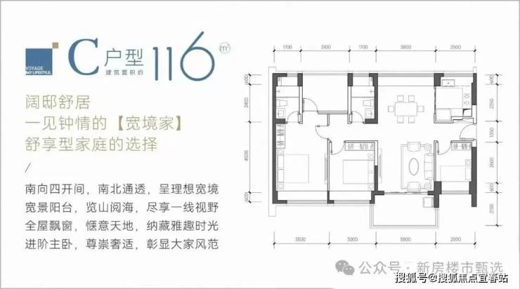 116㎡四房:总价739-806万,单价6.37-6.95万/㎡。