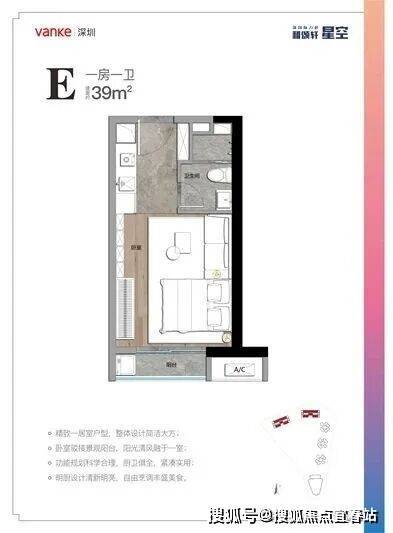 ①约39㎡产品:一居室户型,设计简洁大方、功能规划科学合理,厨卫俱全,紧凑实用;