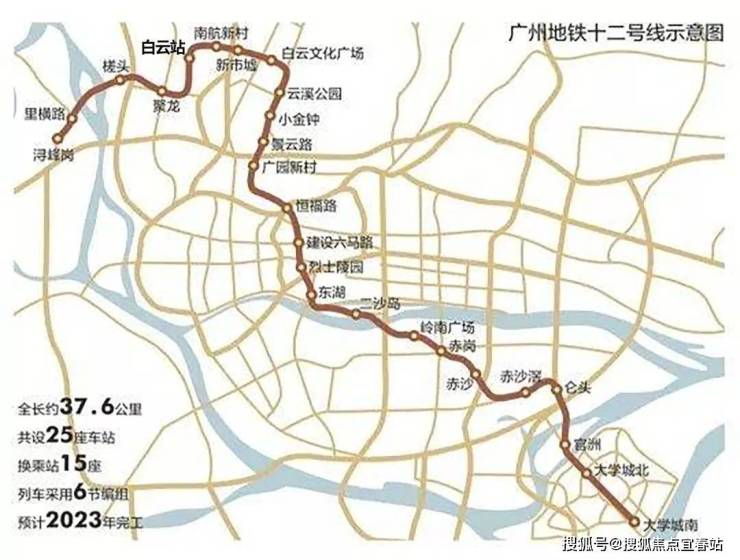 广州地铁12号线计划于2025年6月开通初期运营,其西北-东南走向串联白云新城、二沙岛、大学城等核心区域,并途经白云站TOD。开通后,白云站将实现与市中心、科创高地的快速直达,进一步扩大客流辐射范围。