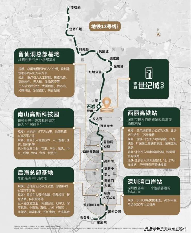 另外规划在建设中的深大城际“石岩中心站”以及13号地铁线“石岩站”距离约1公里,步行约15分钟,3站到西丽百港大,4站到留仙洞总部基地。