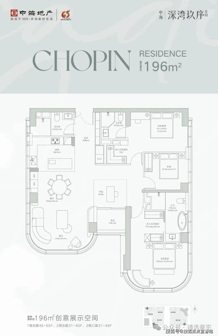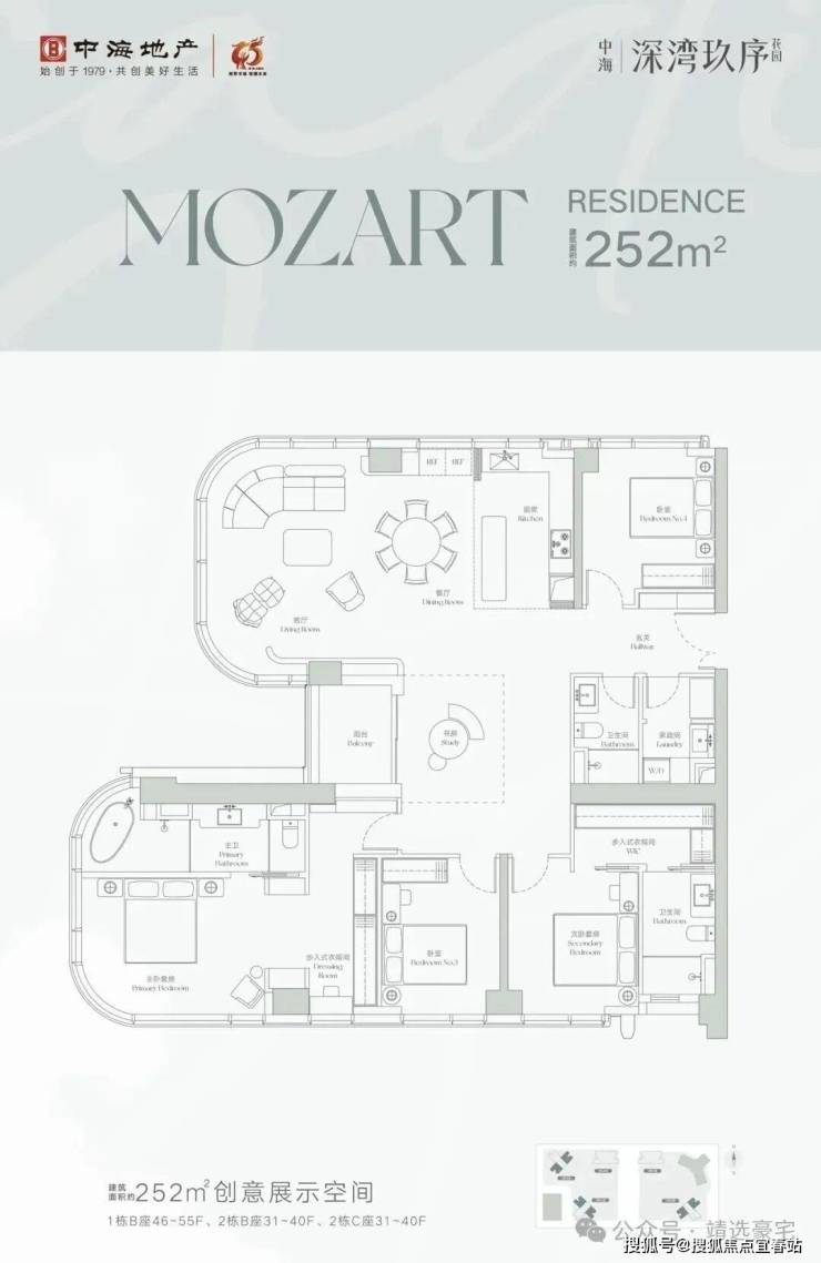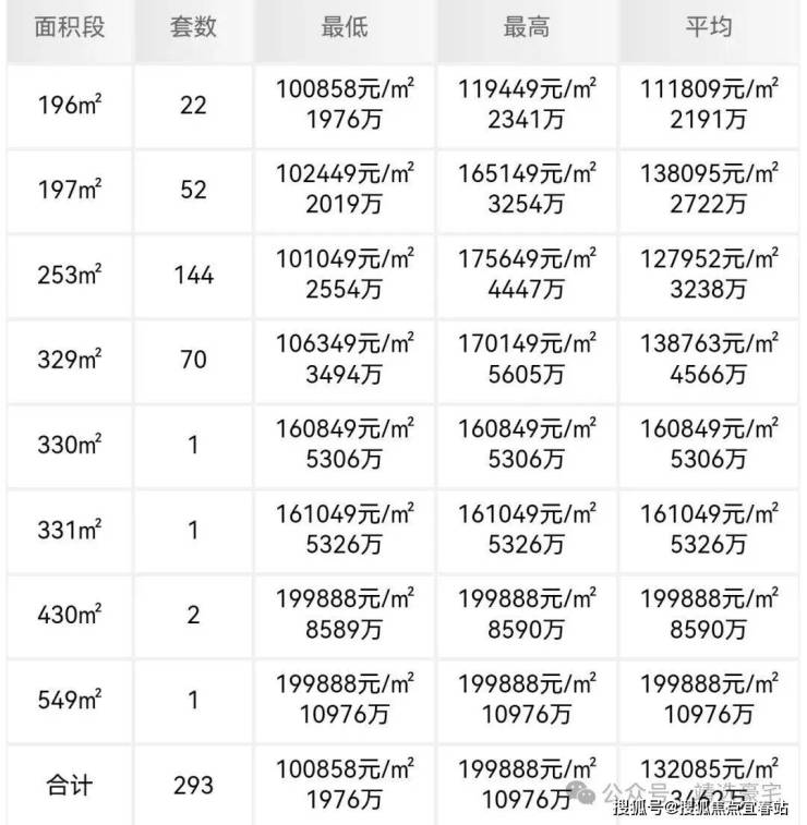 面积段:主力户型为196㎡、252㎡、328㎡大平层,少量400-600㎡顶层复式。