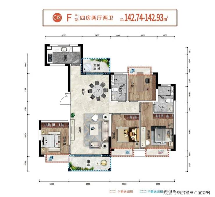 🔹奢阔四室,均带飘窗,珍藏三代同堂幸福时光