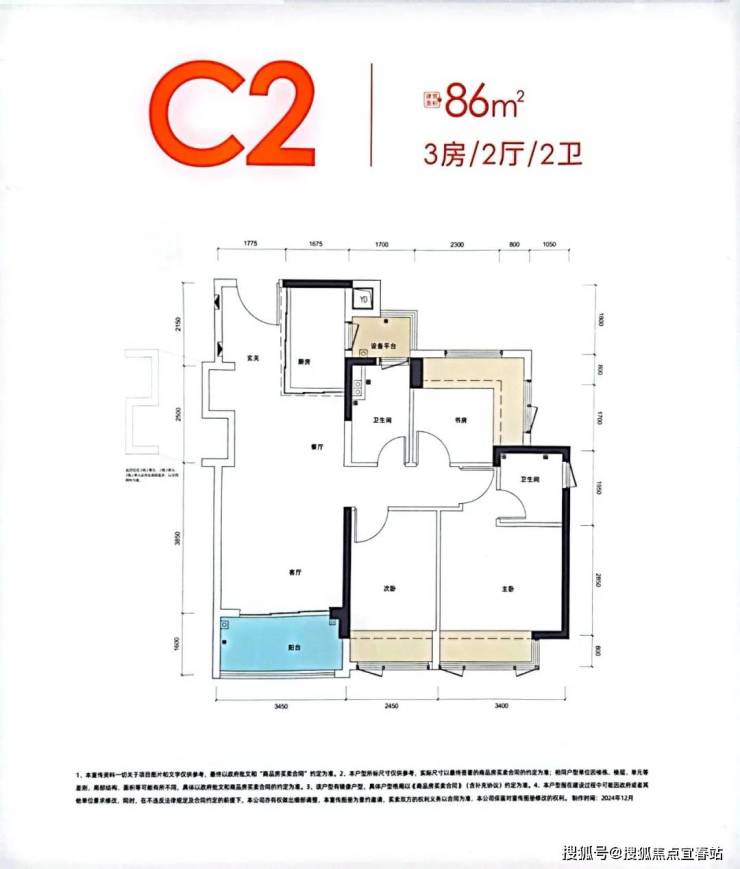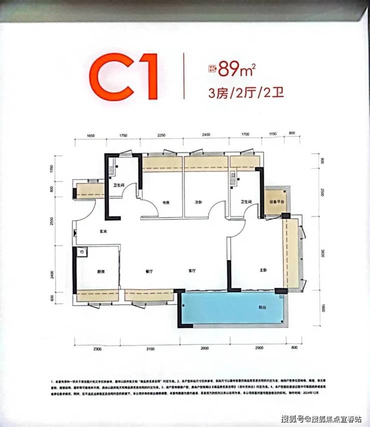 89㎡的3房2厅2卫,设计的是横厅南北通透格局,进门入户玄关,客餐厅5.7米开间,LDKB一体化,四开间朝南,3个卧室分别做到了主卧11.42㎡/次卧7.31㎡/次卧6.93㎡(实测面积,去掉墙体),主卧还带1个设备平台,主卧连接客厅出5.5米长的超大阳台,U型厨房,卫生间三段式分离,赠送面积高达20.09㎡,实际得房率约101%(包含赠送),西南/东南朝向。