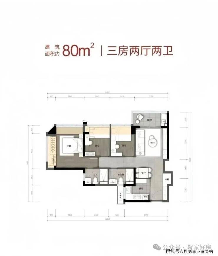 户型:建面约80-110㎡三到四房两卫