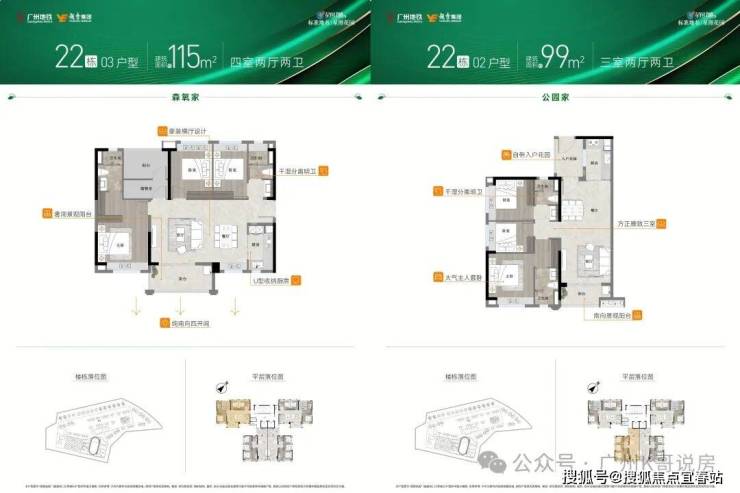 全南向2梯4户独栋小高层,建面约99-115㎡全南向低密舒居;