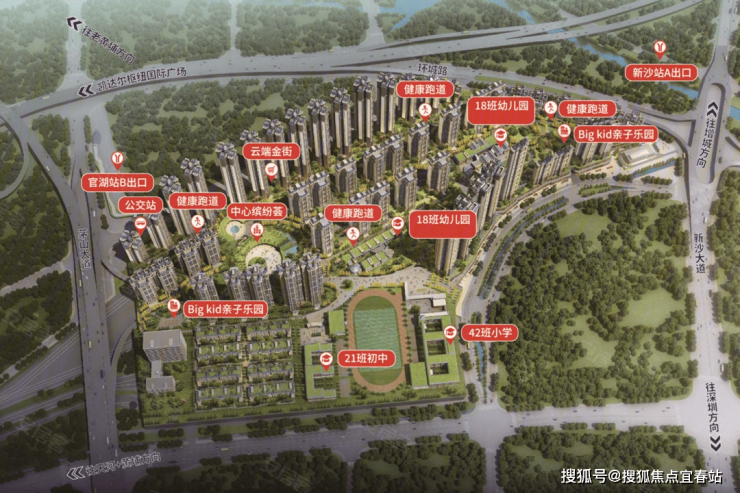 5大儿童主题乐园(其中1个最大面积为2000㎡)亲子菜园、亲水乐园、游泳池、篮球场、4条健康跑道(总长约2.6km),打造最舒适的鲜氧活力园林。