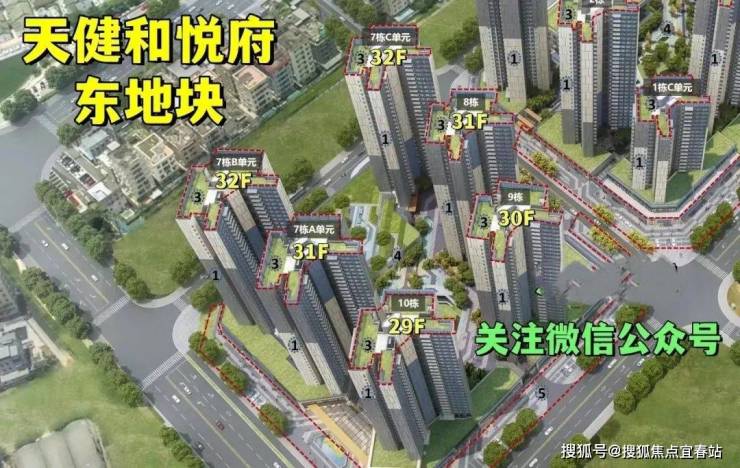 天健和悦府,由天健集团打造,总占地面积约7.62万㎡,总建筑面积约32.8万㎡,计容建筑面积23.93万㎡,容积率4.77,绿化率40%,分东西2个地块开发,共由13栋21-45层高的住宅组成,总规划2833户,其中可售商品房1740套,规划停车位2599个,车位占比约1:0.91。
