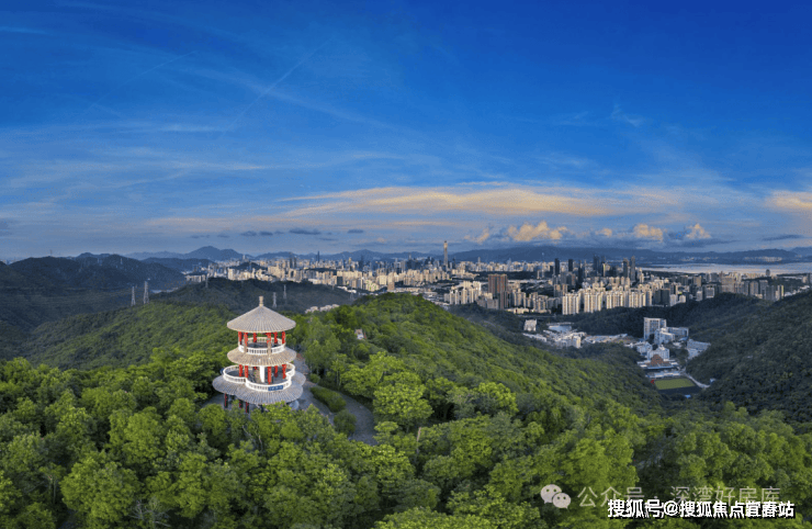最低密的山海环城公园带:三山六公园环绕,背靠塘朗山、安托山、燕晗山,30KM山海环城公园带,近20余万平米山体公园。
