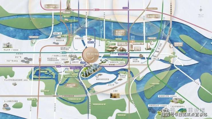 除湿地公园外,项目3公里范围内还有海珠湖公园、瀛洲生态园、广州国际生物岛,四个公园犹如四扇“翡翠屏风”串联一体,十里云水,世界唯一。