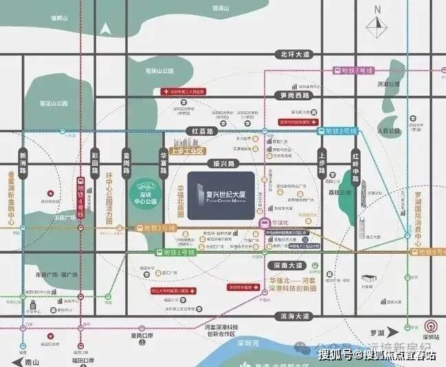 复兴世纪大厦占据交通枢纽 C 位,地下商业可直接连通 2 号线、7 号线、8 号线华强北地铁站,1 站即可换乘 1 号线、3 号线,轻松实现 “四地铁(1/2/3/7/8 号线)+ 三大道(城市主干道)+ 三大口岸 + 双高铁站” 的多维交通覆盖,无论是日常通勤还是跨城出行,都能高效直达,无需漫长等待。