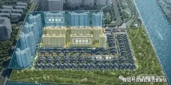 项目由7栋高层住宅、6栋洋房和低密度合院组成,向270°滨河景观开放,层层递进,形成前低后高、玉带环腰的风水格局,保证每户的良好采光和景观朝向。