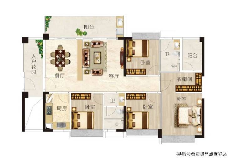 建面约137m² 4房2厅2卫,户型方正实用,动静分区,布局合理,主卧套房设计,尊奢衣帽间,生活精致!