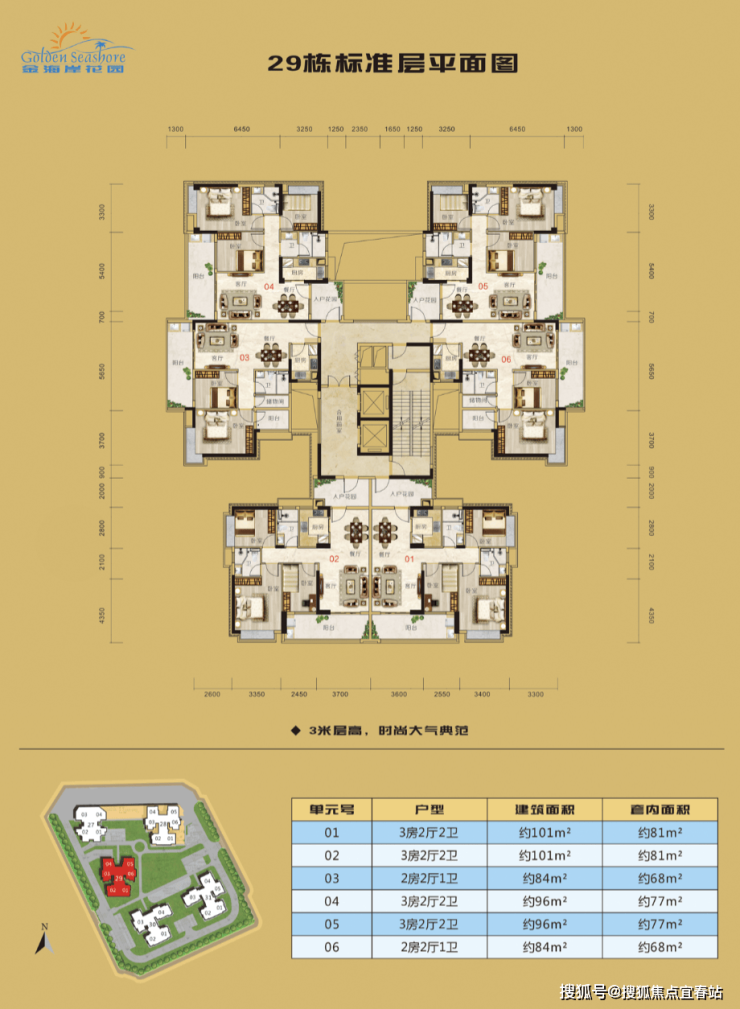 建面约101m² 3房2厅2卫,入户花园,过渡生活,尊崇仪式感,超广角巨幕阳台,视野开阔无遮挡。主卧套房设计,奢享主角尊贵礼遇,U型厨房设计,洗/切/炒操作自如!