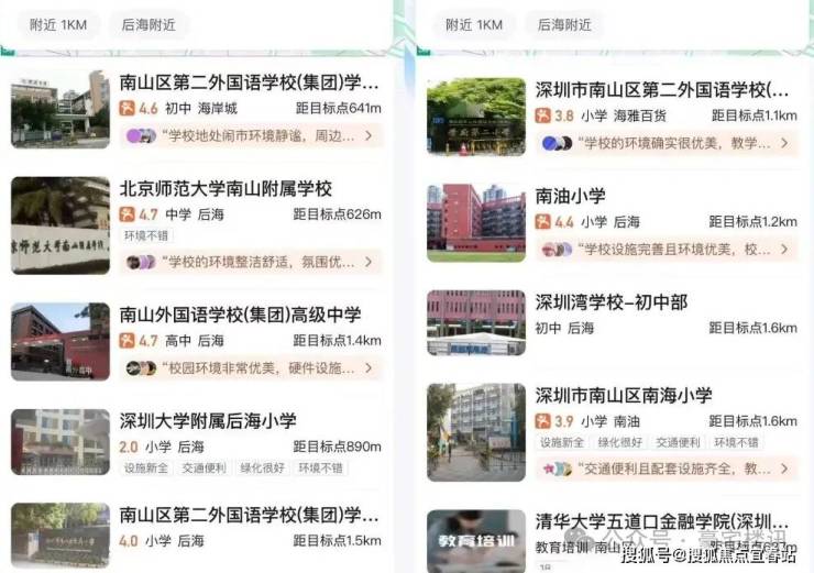 项目周边有北师大附小,南山外国语学府学校,南二外学府中心南油小学,深圳大学附属后海学校,北师范大学附中,深圳湾学校等