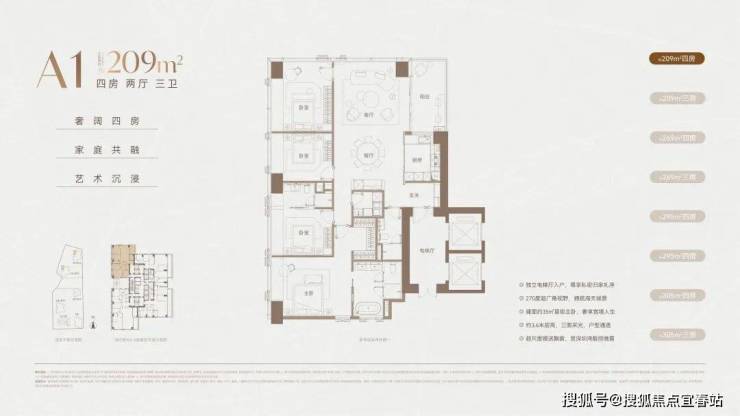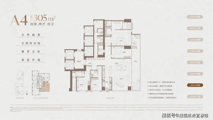 · 低区5F起(150米以内)约209-304㎡四房以上大户型;