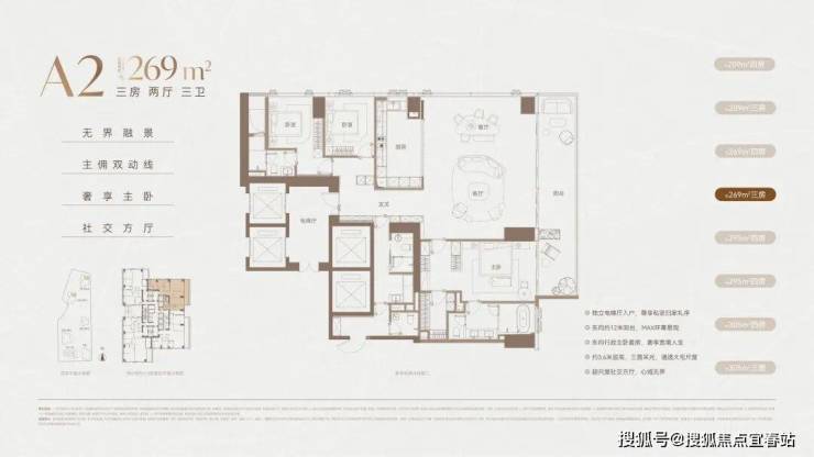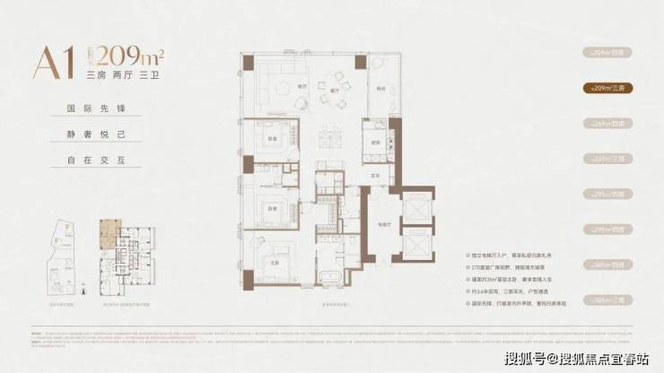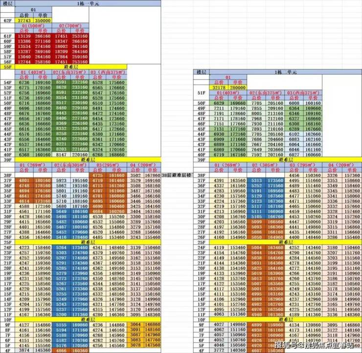 · 超高区58F起(200米以上)约500-700㎡顶级大平层;