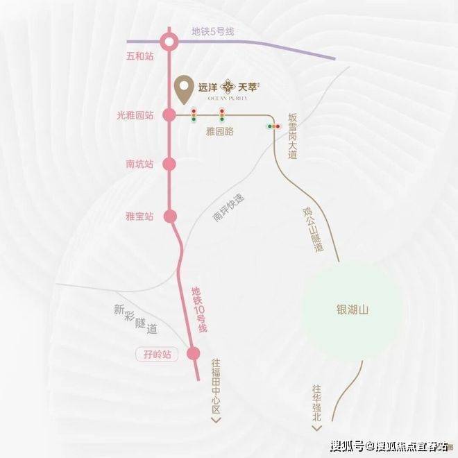 交通楼下无缝连接10号线光雅园地铁站,3个站到福田岗厦,1站到五和转乘5号线2站到深圳北,半小小时内可直达前海,西丽,布吉等深圳中心区域。