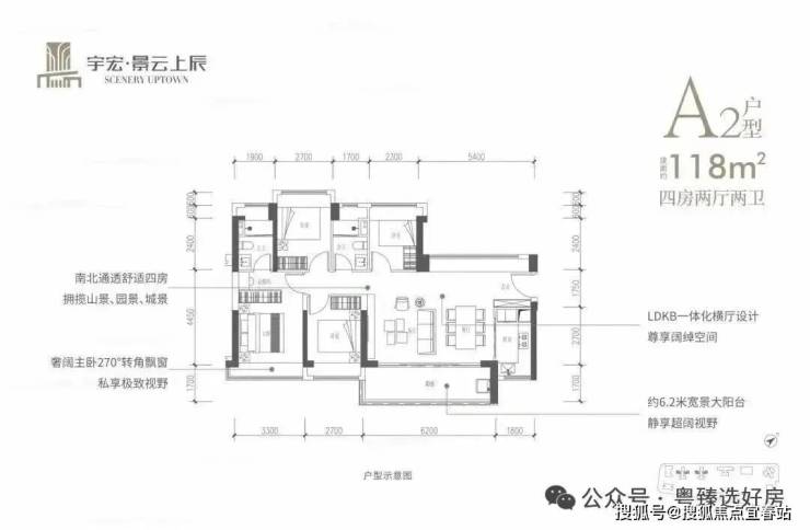 118m²四房折后单价3.96~5.46万,总价470万~648万