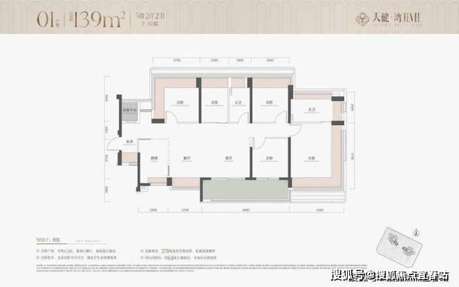 建面约139㎡正5房奢阔横厅户型一步到位,满足家庭生命全周期需求。约6.8m全画幅宽尺阳台+全屋采光+主卧套房270°超广角海景飘窗,带来沉浸式的海幕享受。