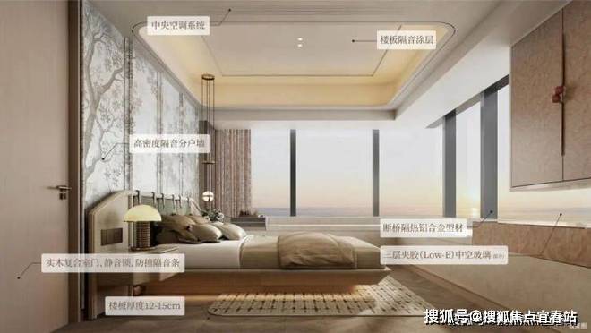 室内还精心打造隔音墙体、静音楼板、三层夹胶中空玻璃、静音木门等多重静音系统,隔绝外界喧嚣,守护居家安静。