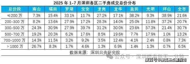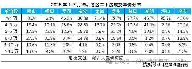 据深圳贝壳研究院数据显示,今年1-7月4万元以下成交占比达到42%,居各单价段之首。