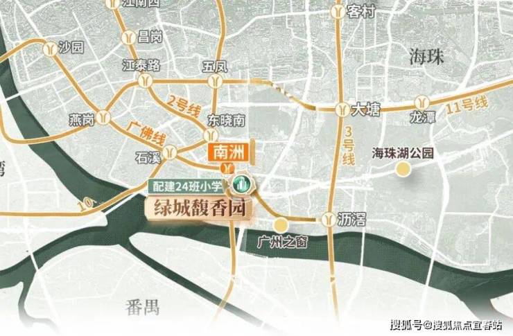 绿城·馥香园位于广州市海珠区的核心位置,紧邻双地铁站(广佛线/地铁2号线南洲站),交通便捷。项目周边不仅拥有丰富的自然景观,如珠江后航道和海珠湿地公园,还毗邻多个商业中心及优质教育资源,为居民提供了一个集宜居、宜商、宜业于一体的理想居住环境。