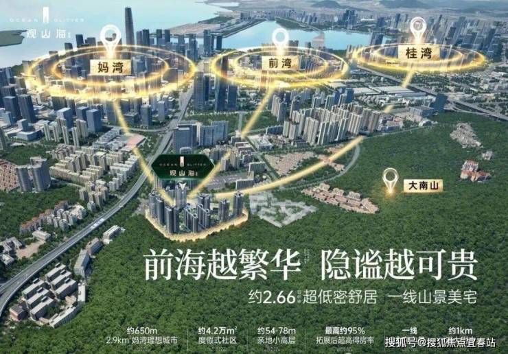 项目位于前海大小南山片区西组团,重点布局教育、生活、体育等优质公共配套。衔接桂湾国际金融城与妈湾深港国际服务城,形成前海黄金发展三角,居住通勤一步到位。享约 53.8 公顷生态绿地,山海通廊贯通妈湾理想城市,成就高品质生态宜居标杆。