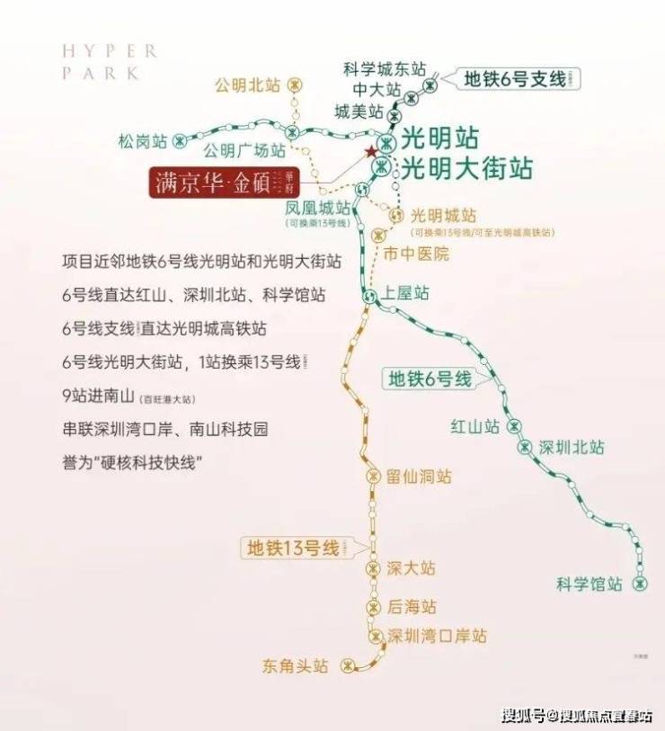 地铁配套:项目距离6号地铁线“光明站”约600米,步行需要11分钟左右,2站到凤凰城站,可以换乘13号线,4站到光明城站,这里可以换乘光明城高铁站/6号地铁线,6站到宝安上屋站,11站到南山西丽留仙洞,14站南山高新园,18站到后海。