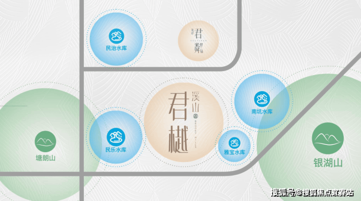 溪山君樾位处深圳“中心湖区“,是深圳最稠密的湖区所在地,项目周边环伺4大自然生态湖泊---民治水库、民乐水库、雅宝水库、南坑水库,居住在此,湖岸微澜风光无限,滋养健康涵养心境,孕育都会生活于家族贵雅之道;独享城市无价峰顶对晤湖景无垠的豁达高远。