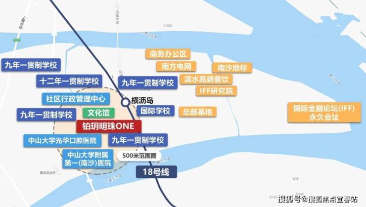 教育方面,横沥岛规划17所公立中小学,板块周边已建有广州外国语学校、广州市湾区实验学校、广大附中(南沙)实验学校,中国科学院大学广州学院(在建中)。