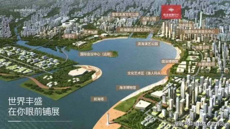 2.绝佳景观- 占据前海桂湾首排,纵享一线绝佳海景;汇聚前海石公园、前海国际金融交流中心、剧院等城市客厅超级规划,尽享T型中轴公园生态体验。