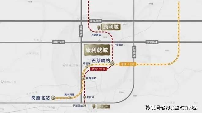 康利乾城距双地铁(14号线、17号线在建)交汇站——石芽岭站仅百余米,14号线4站直达福田岗厦北,17号线直达罗湖口岸,属于地铁上盖物业。