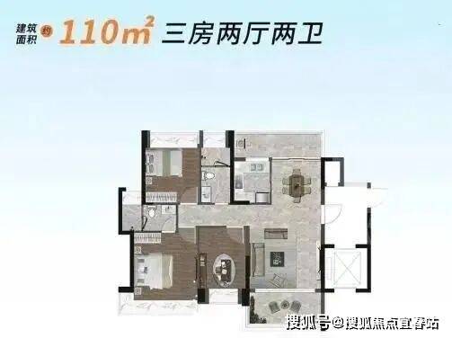 其二,户型为建面约85-120㎡两至三房,舒适大两房起步,其中110㎡-115㎡-120㎡三房的套数总占比为89%,是纯粹的大户型家庭社区。