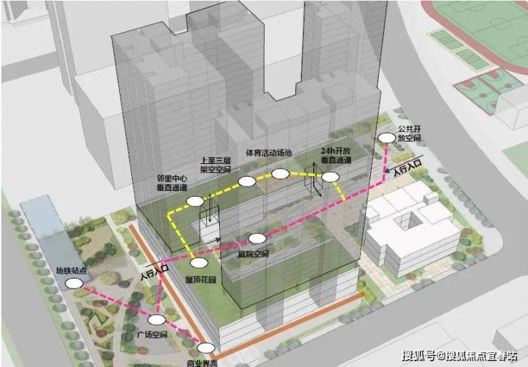 在社区入口处:利用商业和交通之间的关系,通过链接沿街商业,实现商业式归家。