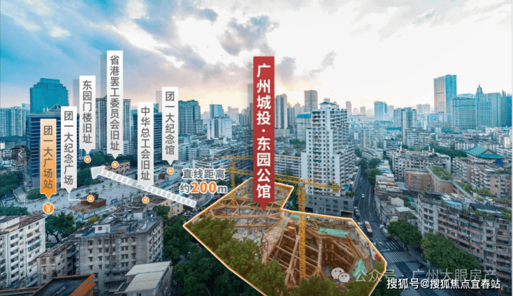 项目旁有广州东园文化广场整合东园门楼、省港大罢工旧址、中华全国总工会旧址等文物,打造成为广州近现代史迹的集中展示基地。