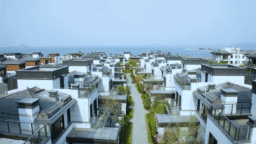 万科红树东岸的滨海叠墅,遵循棕榈岛水系园林分布,美感钢琴曲线排序规划,户户临水,户户观景,以自然笔法,探索生活沉淀,诠释墅境中的如画意境。
