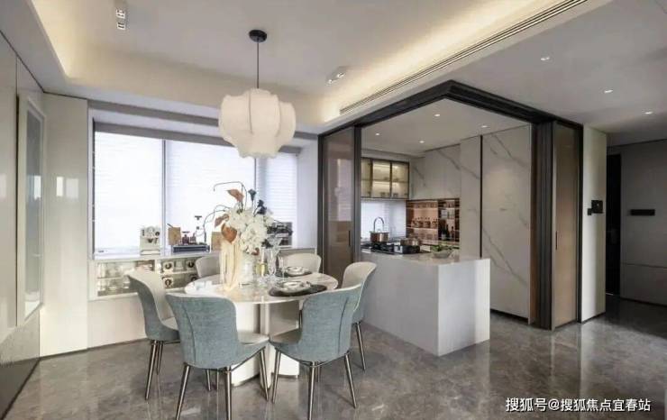 在客厅打造上,项目采用LDKB一体化设计,提前规划陪伴式生活场景,打造成长型家庭空间。
