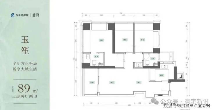 项目首推约89-169㎡3-6房进阶大宅,最高约104%实用率,同等面积多一房