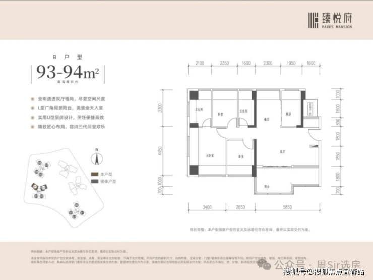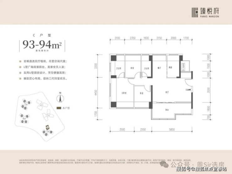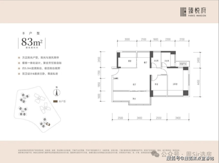 【户型面积】约83-94㎡3-4房