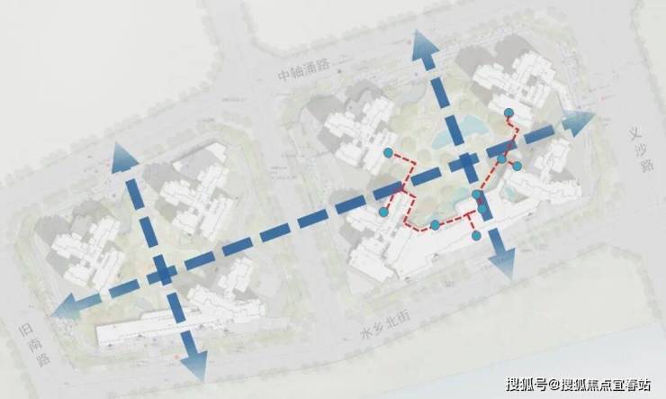 采用严格的中轴线对称布局,通过轴线的设计,结合一系列具有仪式感的归家空间节点,强化了建筑的方向性和引导性,使住户归家时能够感受到空间的层次递进。