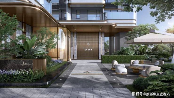 一进入府:广州第一个四代居“场景式体验”社区,酒店式主入口礼序形象,对景发光云石过渡空间。