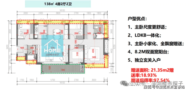 新房项目已经很久没看到这么亮眼的数据了,目前大多数楼盘使用率都在71-74%左右,算上赠送也在80%出头,相比之下,阅臻府户型使用率要高出10%+。