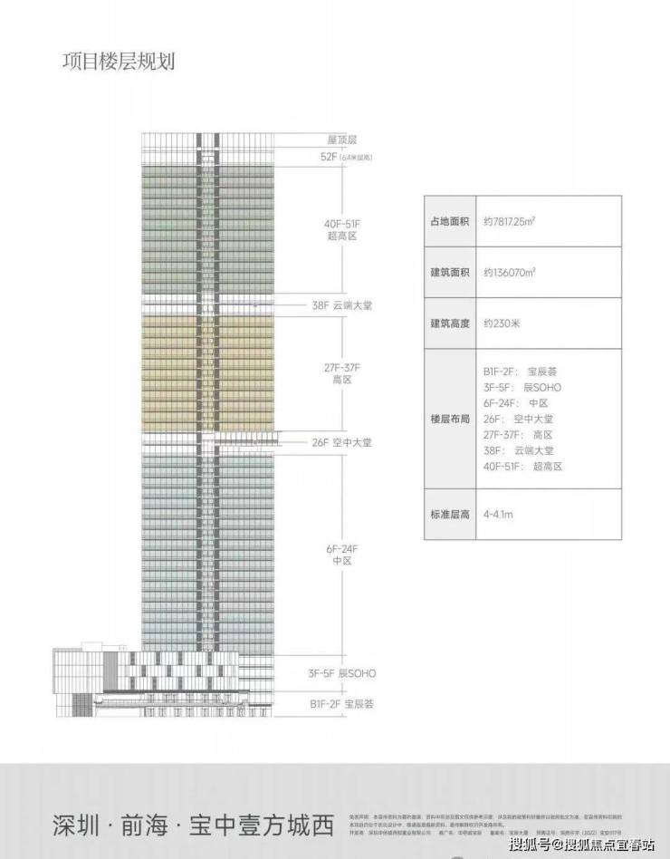高度与规模:总高约230米,总建筑面积13.6万平方米,共52层,是宝安中心区最高建筑。