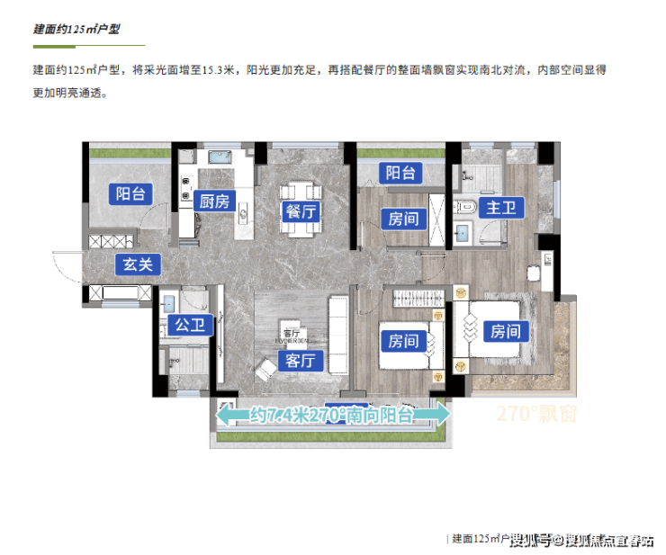 建面约115㎡四房户型,带有独立入户玄关,公共卫生间也设置在入户处,每天回家第一件事就能清洁消毒,将灰尘与细菌隔绝于室内。