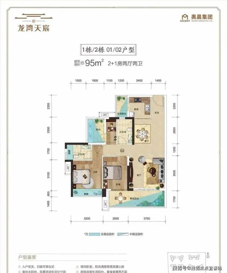 建面约95㎡3房户型的亮点:户户朝南,动静分区,约6.2米大阳台,270°景观房;科学3房布局,户户朝南,6.2米瞰景大阳台;主卧舒适套间+270°景观房,超舒适享受。