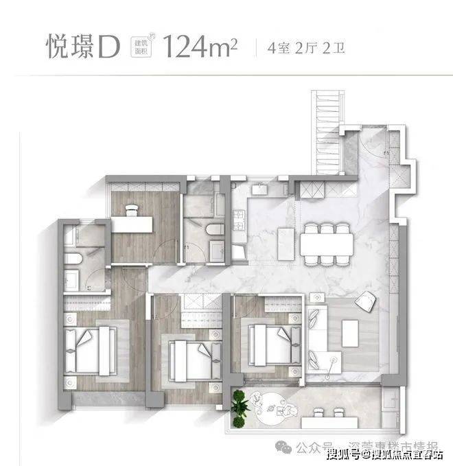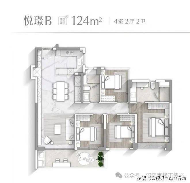 【悦璟D户型 建面约124㎡】