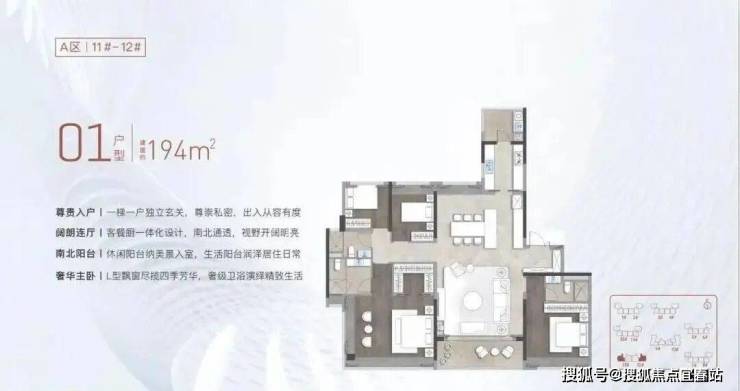 户型鉴赏:纯南向奢装四房,空间舒适无比