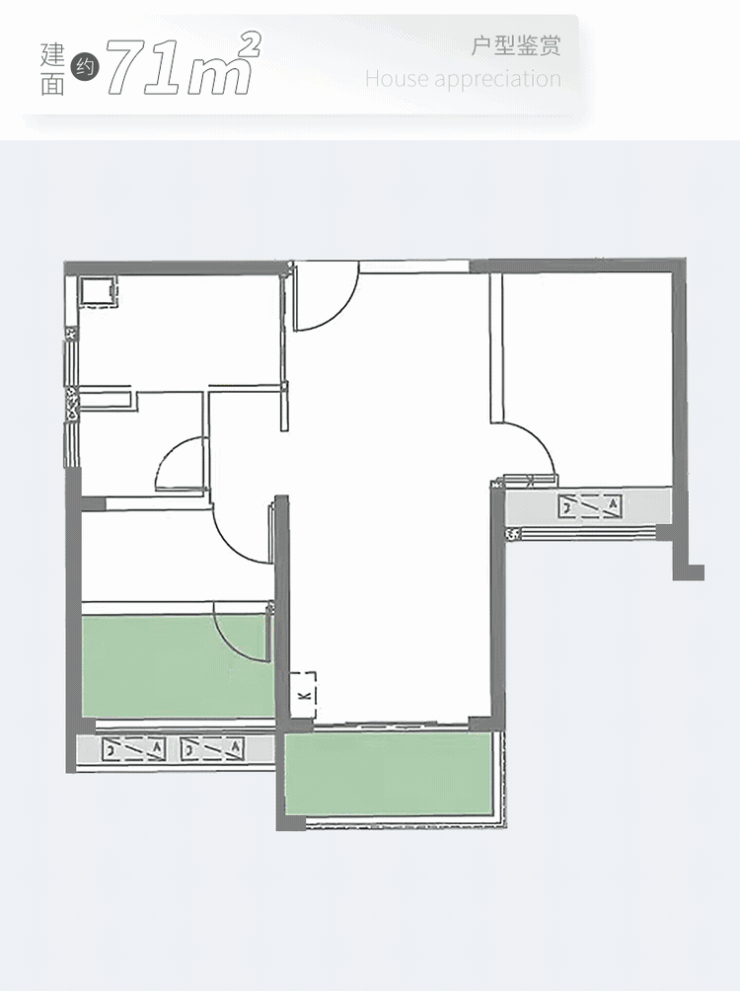 建面約71㎡(764ft²) 1➕1房2廳1衛