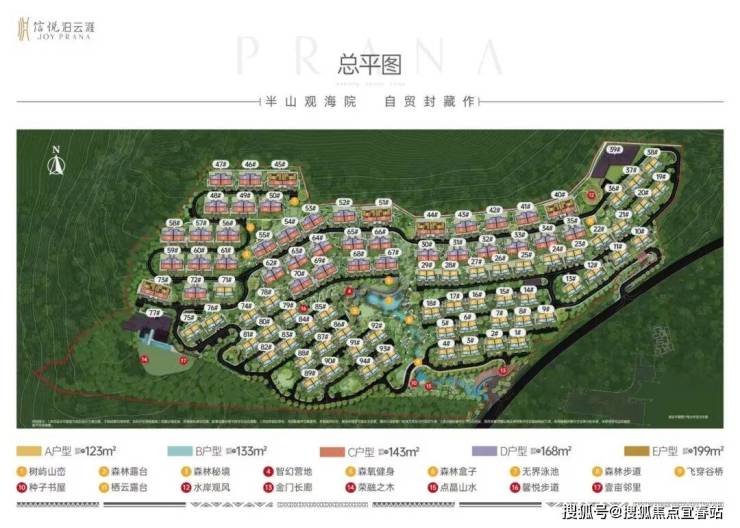 项目因地制宜采用退台式设计,结合山地高差阶梯铺排创新院落,有天有地有景,容积率仅约0.28,产品规划为建筑面积约123-199㎡海涯院落,以纯粹低密之境,重新定义海涯院落的边界。