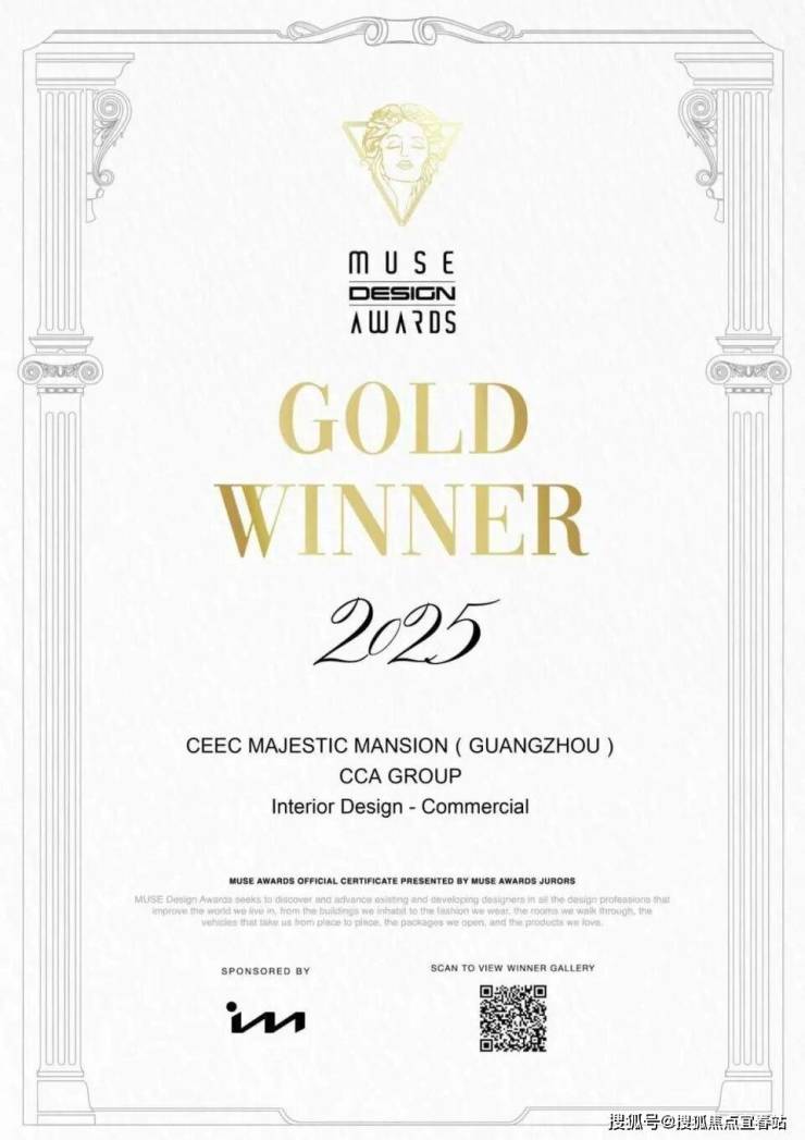 更值得称道的是,全球建筑与设计领域极具影响力的美国缪斯设计奖2025年第11届获奖名单中,广州葛城公司打造的《能建·天誉府》室内项目设计方案,从众多全球参赛作品中脱颖而出,荣获室内设计类别“金奖”。
